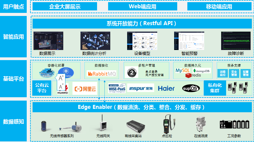传感器采用无线+有线组合,平台软件采用微服务架构,实现灵活便捷的部署运维